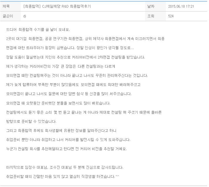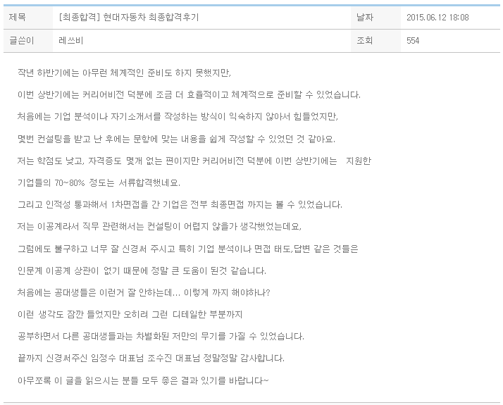 내일 연수를 앞두고 짐을 다 싸고난 후 이렇게 글을 쓰게 되니 기분이 참 이상하네요. 밑에 LG생활건강 최종합격 글에 이어 kt 합격 후기까지 2번째 후기를 쓰다니...저에게도 행복한 고민이라는 것을 하는구나 하면서도 막상 고민을 하자니 힘들긴 했지만kt를 선택하게 된 커리어비전 수강생입니다. 제가 이런 행복한 고민을 할 수 있었던 것도, 연수를 앞두고 설레는 마음을 갖게 된 것도계획이 없던 상반기 채용으로 적게 뽑을 거라던 kt 공채에서도 당당히 합격을 할 수 있었던 것'커리어비전이 없었으면 가능했을까' 생각이 드는 밤입니다. LG생활건강에서 전반적인 후기를 썼기에.. 커리어비전 덕에 합격한 kt 전형과정을 소개하려 합니다. LG생활건강과 같이 kt역시 서류, 인적성, 면접으로 이루어져있지만 kt는 신..