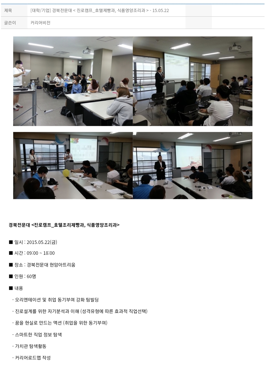 경북전문대 <진로캠프_호텔조리제빵과, 식품영양조리과>