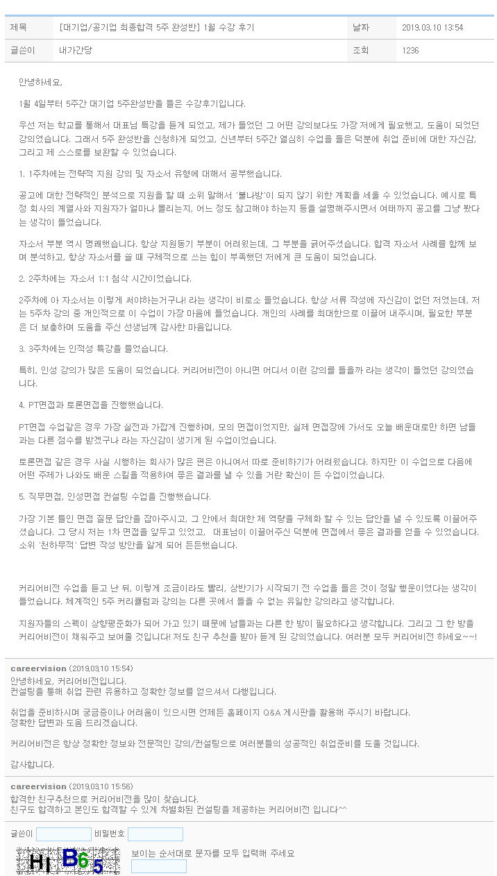특히, 인성 강의가 많은 도움이 되었습니다. 커리어비전이 아니면 어디서 이런 강의를 들을까 라는 생각이 들었던 강의였습니다.