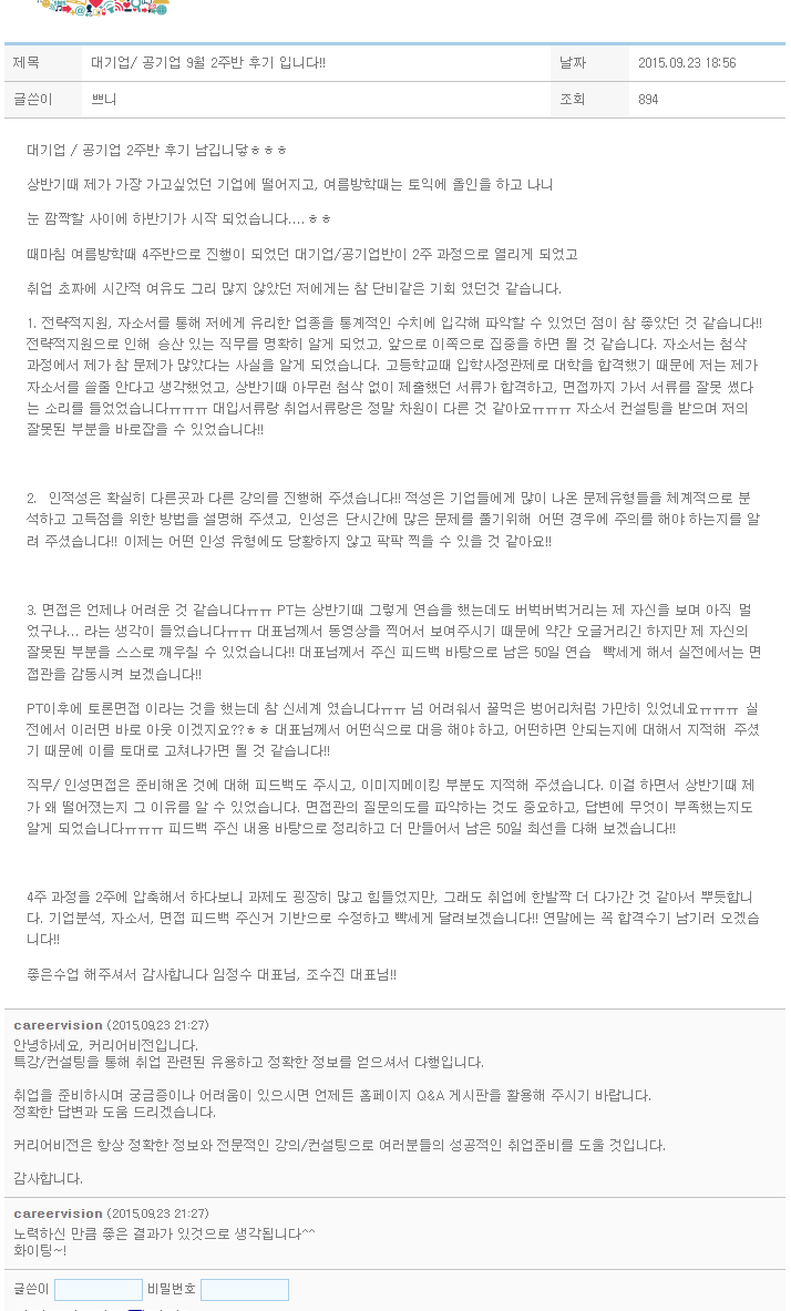 때마침 여름방학때 4주반으로 진행이 되었던 대기업/공기업반이 2주 과정으로 열리게 되었고