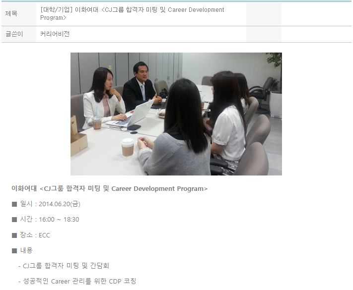 이화여대 <CJ그룹 합격자 미팅 및 Career Development Program>