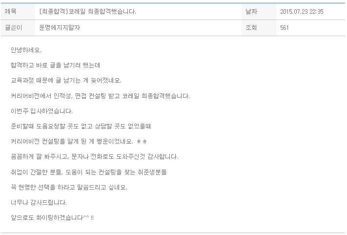 커리어비전 컨설팅을 알게 된 게 행운이었네요. ㅎㅎ