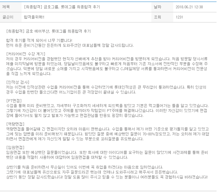 [최종합격] 금호 에어부산, 롯데그룹 최종합격 후기