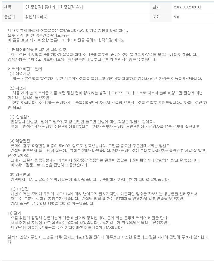 이 글을 보고 저와 비슷한 분들이 커리어 비전을 통해서 합격하길 바라요!