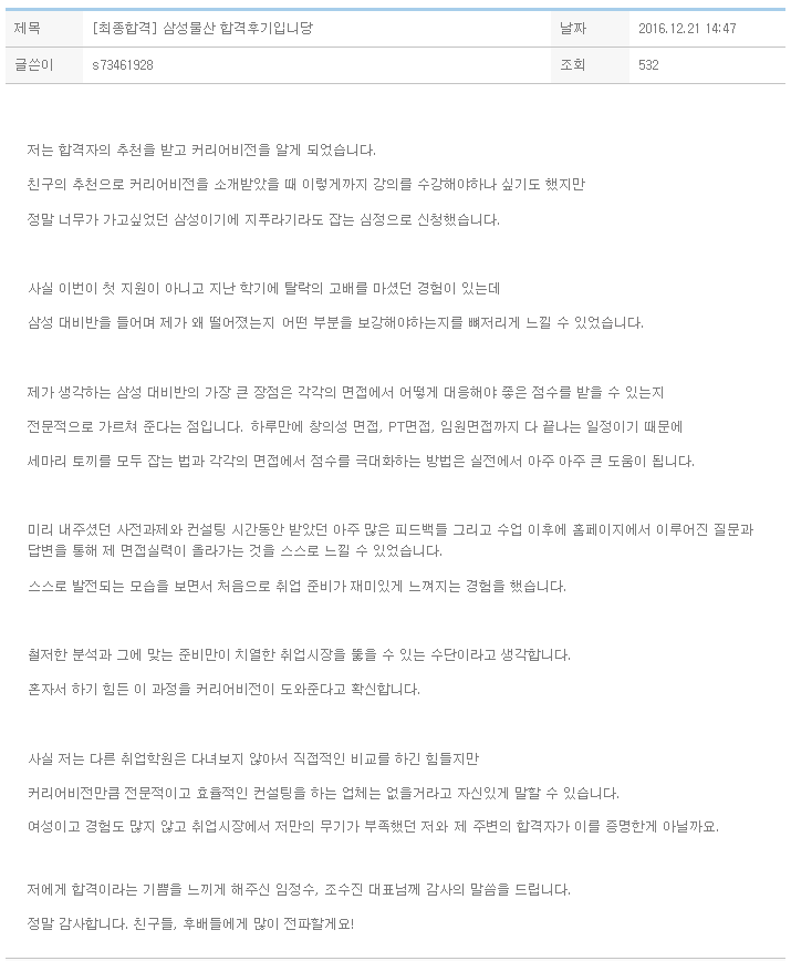 저는 합격자의 추천을 받고 커리어비전을 알게 되었습니다.