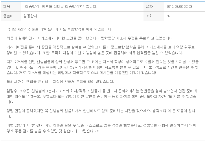 특히나 저는 면접을 준비하는 과정에 있어서 도움을 많이 받았습니다.