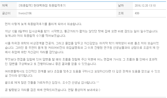 늦게나마 저의 최종합격 수기를 적어보겠습니다.