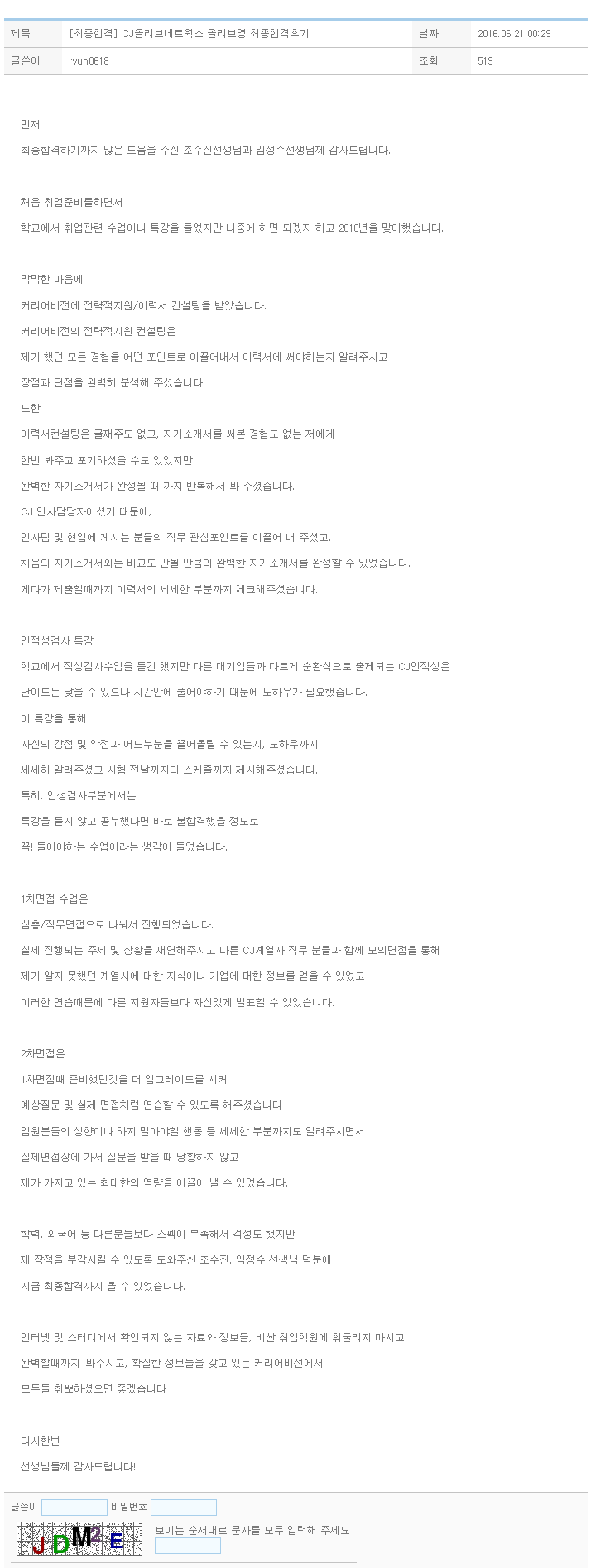 CJ 인사담당자이셨기 때문에,