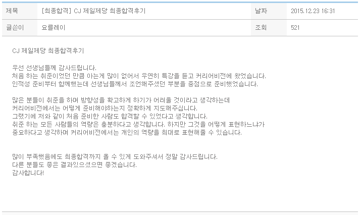 많이 부족했음에도 최종합격까지 올 수 있게 도와주셔서 정말 감사드립니다.