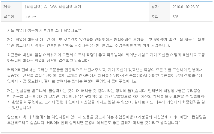 커리어비전과 함께라면 분명히 여러분도 좋은 결과가 따라올 것이라고 생각합니다^^