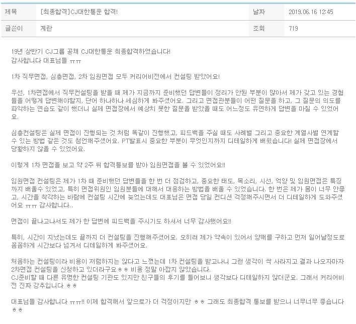 CJ준비할 때 다른 유명한 컨설팅 기관도 있지만 친구들의 후기를 들어보니 생각보다 디테일하지 않더군요.
