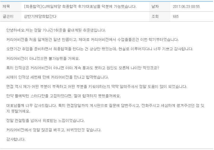 씨제이 인적성 세번째 만에 커리어비전을 만나고 합격했습니다.
