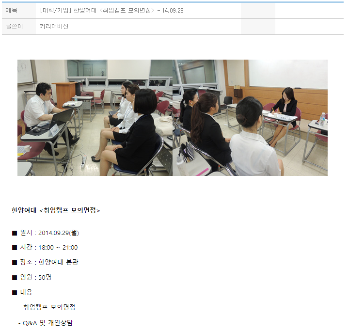 한양여대 <취업캠프 모의면접>