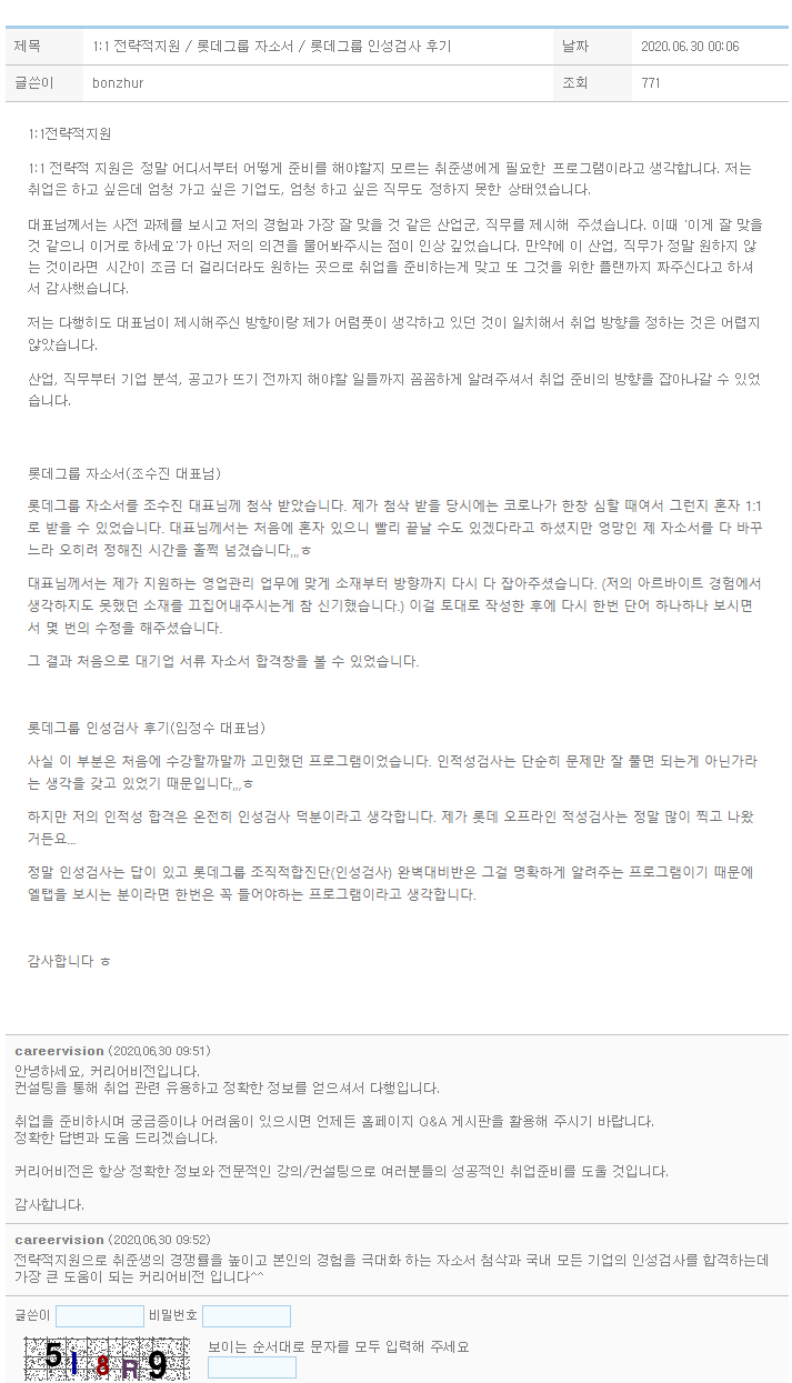 1:1 전략적지원, 롯데그룹 자소서, 롯데그룹 인성검사 후기