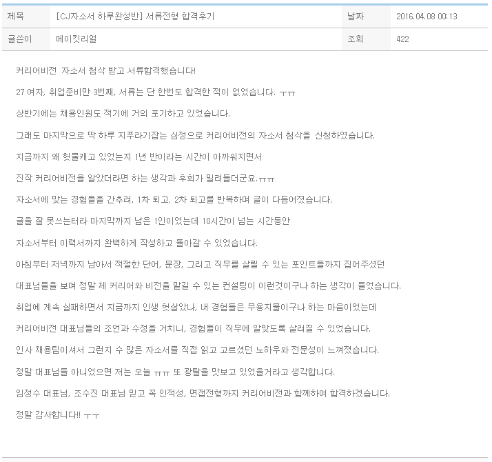 | [CJ자소서 하루완성반]CJ 자소서 합격 후기 (0) | 2025.12.11 |