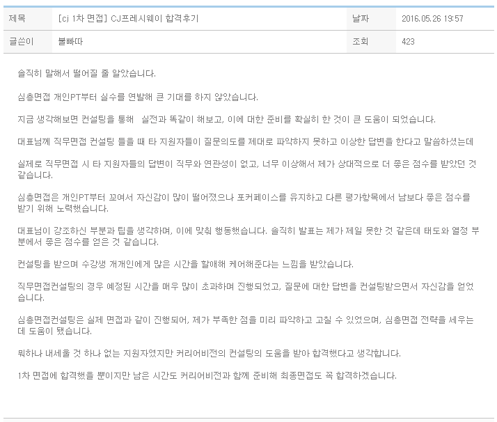 [cj 1차 면접] CJ프레시웨이 합격후기