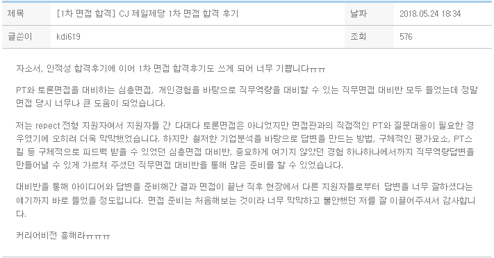 CJ제일제당 면접 특강 및 합격 후기