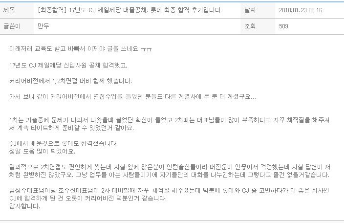 [최종합격] CJ 제일제당 대졸공채, 롯데 최종 합격 후기입니다